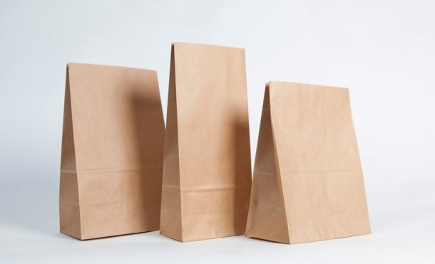 Bolsa de papel sin asas con fondo americano, tambien conocidas como bolsas SOS, son una opción económica y muy práctica para preparar envíos de comidas para llevar. Tienen una base ancha que las convierte en muy apropiadas para la organización de los diferentes envases de comida para delivery y take away.
