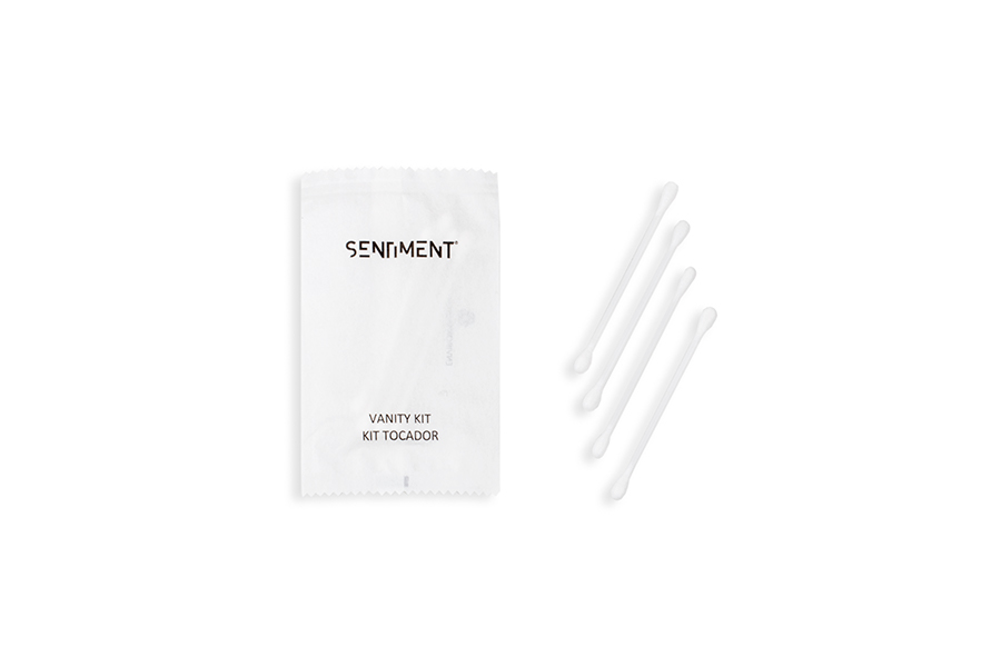 10 PACKS 50 UNIDADES Kit tocador con 4 bastoncillos. Embolsado en papel.