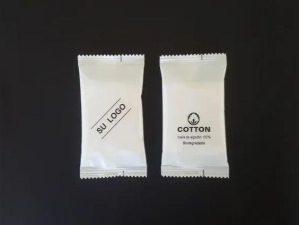 Toallita humedecida de rizo de algodón 100%, biodegradable.