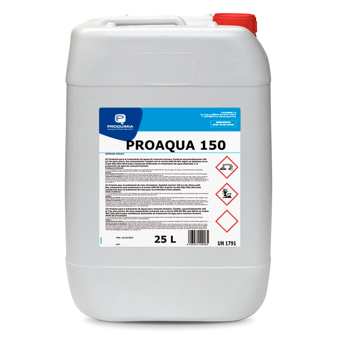 Hipoclorito sódico para la desinfección de aguas de consumo humano. Adecuado también para procesos de desinfección de circuitos para la prevención de la legionelosis: agua caliente sanitaria, agua fría de consumo humano, instalaciones de refrigeración, etc.