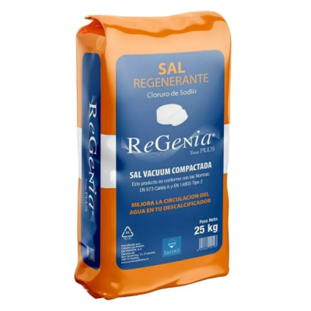Es la única sal para descalcificador compuesta sólo de sal vacuum, sin antiapelmazantes ni aditivos y con la mejor forma de pastillas para favorecer la circulación del agua y evitar la formación de bóvedas en el depósito de sal del descalcificador.